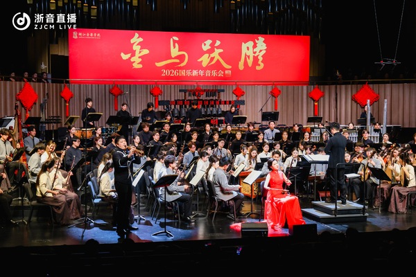 辭舊迎新頌華章,國樂鏗鏘啟新程。12月31日晚,學(xué)院音樂廳內(nèi)座無虛席,由國樂系、民族樂隊學(xué)院、民族室內(nèi)樂團承辦的“金馬躍騰·2026國樂新年音樂會”成功上演。本場音樂會以“經(jīng)典·民族·時代”為主線,通過創(chuàng)新編排的曲目和多元藝術(shù)形式的交融,為觀眾呈現(xiàn)了一場彰顯文化自信、充滿時代氣息的國樂盛宴。學(xué)院領(lǐng)導(dǎo)王瑞、蔡亦軍、奚麗萍、施瑩及校外領(lǐng)導(dǎo)嘉賓出席音樂會。