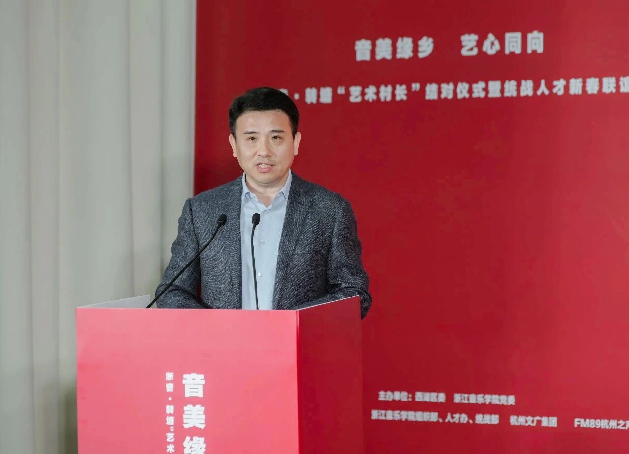 音美緣鄉(xiāng),藝心同向。1月16日下午,浙音·轉(zhuǎn)塘“藝術(shù)村長”結(jié)對儀式暨統(tǒng)戰(zhàn)人才新春聯(lián)誼會在西湖區(qū)轉(zhuǎn)塘街道長埭村舉行。學(xué)院黨委書記薛亮,西湖區(qū)委書記董毓民致辭,學(xué)院領(lǐng)導(dǎo)王均寅、蔡亦軍、李俊、施瑩,西湖區(qū)領(lǐng)導(dǎo)李軍、柴聞樂、董威等出席活動。