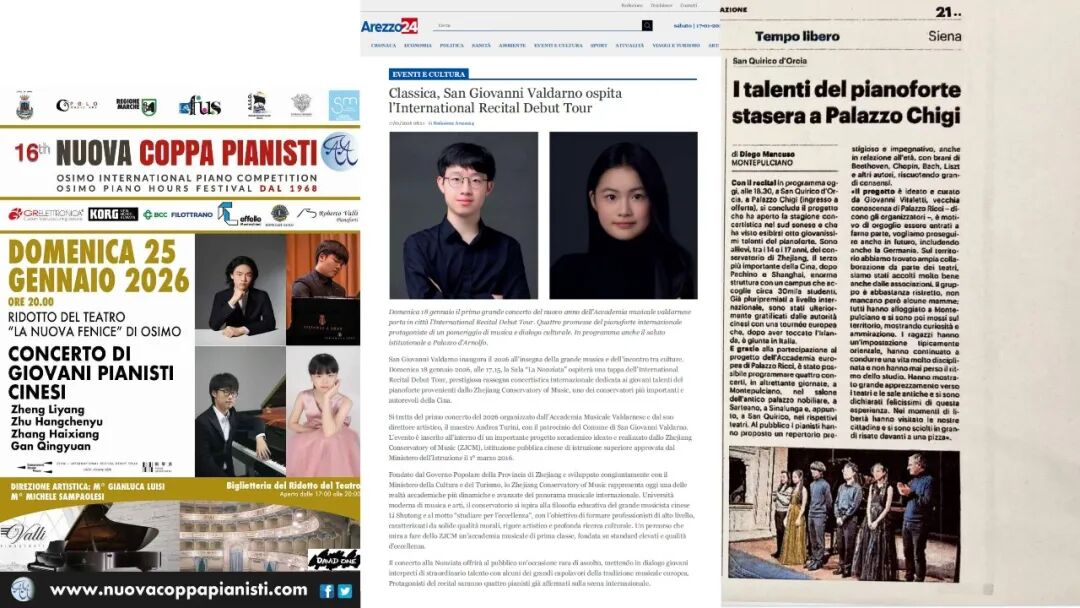 在圣喬瓦尼·瓦爾達(dá)諾演出期間,團(tuán)隊(duì)受到當(dāng)?shù)厥虚L(zhǎng)瓦倫蒂娜·瓦迪(Valentina Vadi)及文化部門官員的熱情接見(jiàn)。雙方就中外文化藝術(shù)交流展開(kāi)簡(jiǎn)短友好交流,市長(zhǎng)對(duì)浙音學(xué)生的演奏水平給予高度認(rèn)可,并對(duì)兩地后續(xù)文化交流表達(dá)了強(qiáng)烈的期待。意大利《La Nazione》《Corriere di Siena》等主流媒體也紛紛聚焦報(bào)道,詳細(xì)介紹了浙音學(xué)子的演出情況及現(xiàn)場(chǎng)反響,進(jìn)一步擴(kuò)大了此次巡演的影響力。