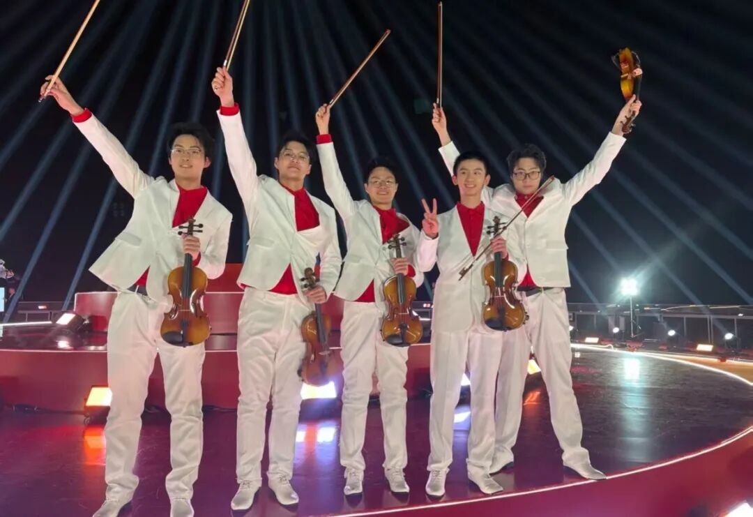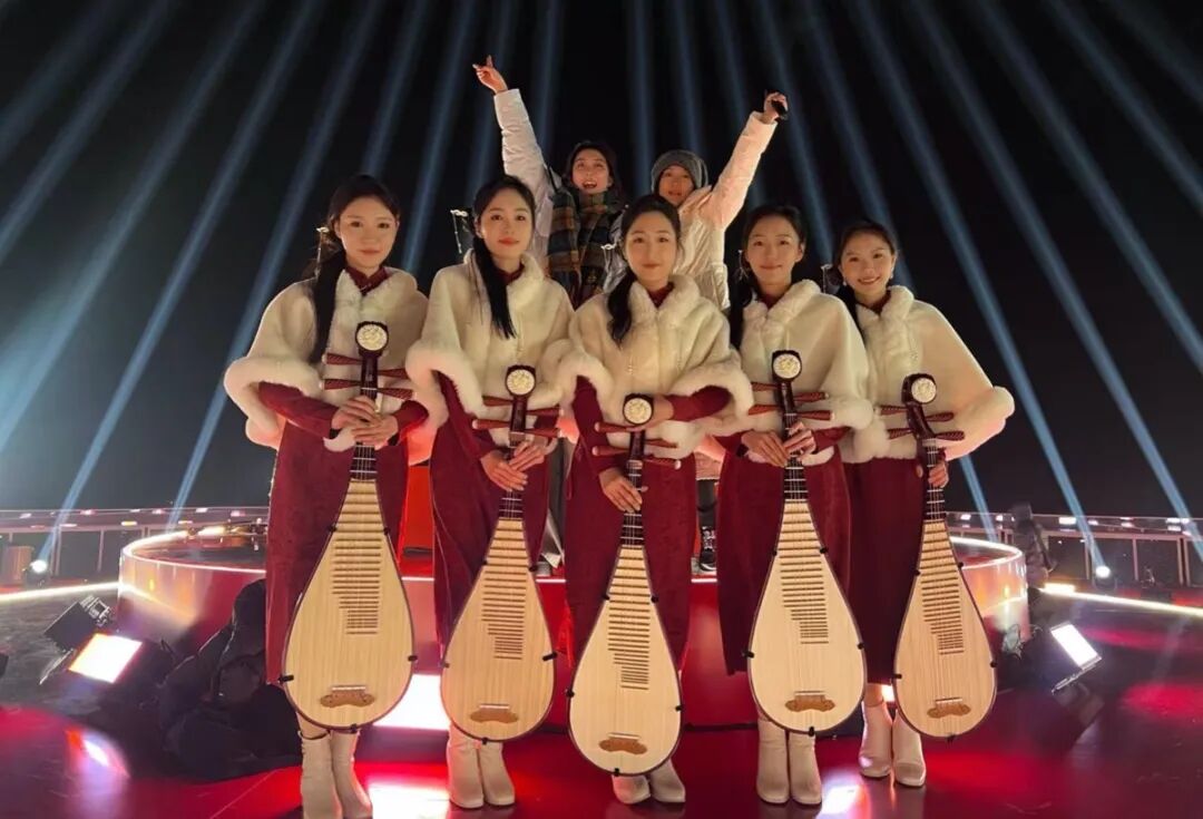 義烏的深冬,薄霧凜風(fēng)。在義烏之巔城市觀景臺(tái)的“蛋糕形”舞臺(tái)上,浙音民族室內(nèi)樂團(tuán)演奏員黃琳、譚紫玲及國樂系研究生馮葉、王理、程寒千組成的五人琵琶小組,與管弦系學(xué)生林宏俊等小提琴演奏員、舞蹈演員共同完成開場(chǎng)演奏。“雖然琵琶部分僅占30秒,鏡頭可能一閃而過,但能登上國家級(jí)舞臺(tái),我們感到無比自豪。”演奏員們說道。短短30秒,是在寒風(fēng)中無數(shù)次凍僵又搓熱的指尖換來的綻放,是鏡頭之外無數(shù)汗水凝結(jié)成的瞬間——這便是浙音人對(duì)“臺(tái)上一分鐘”最真實(shí)的注解。
